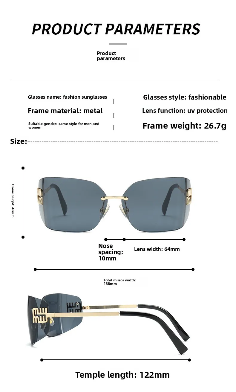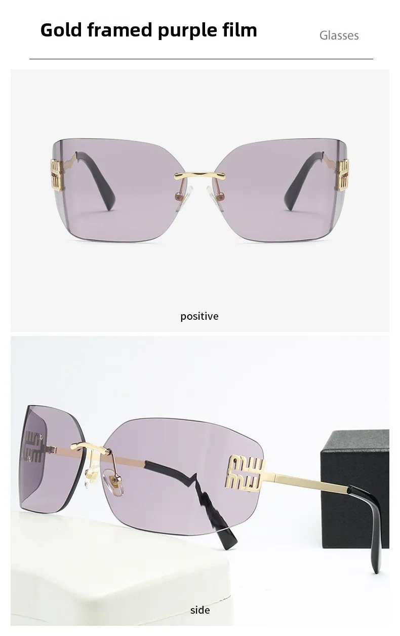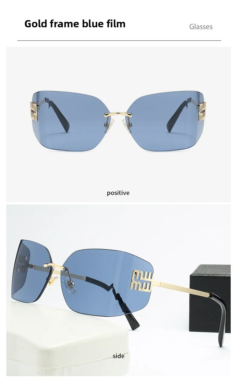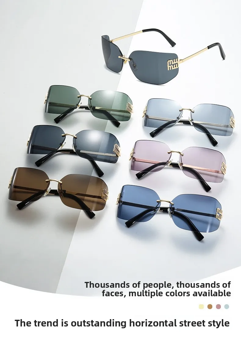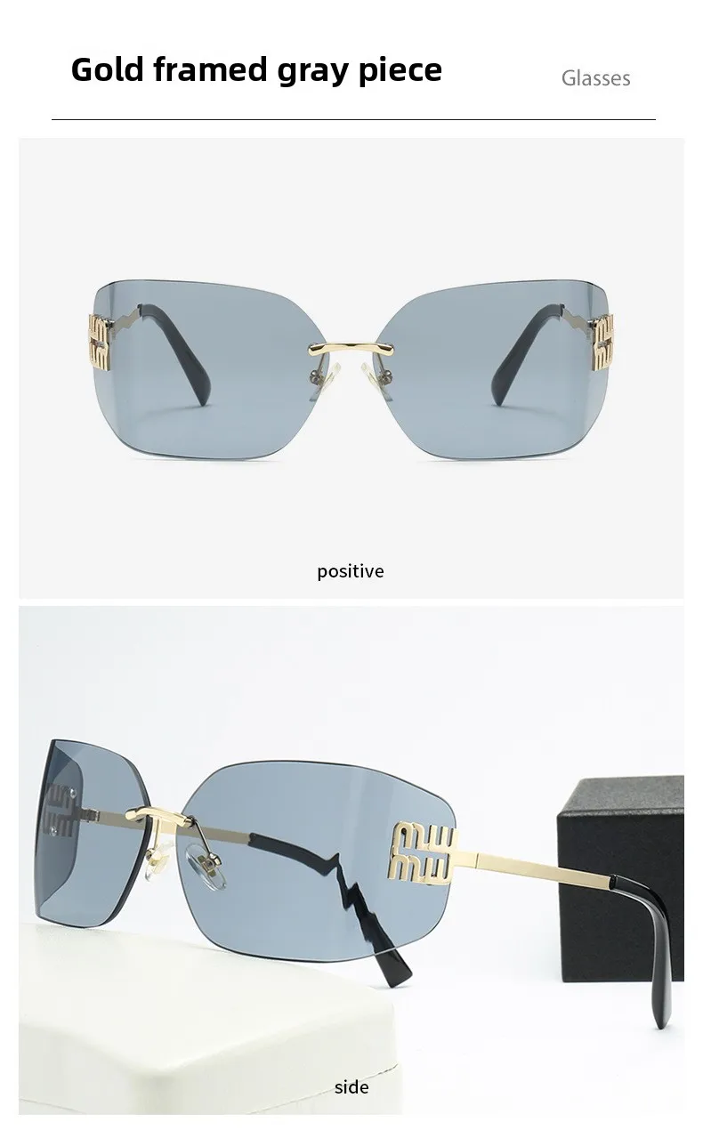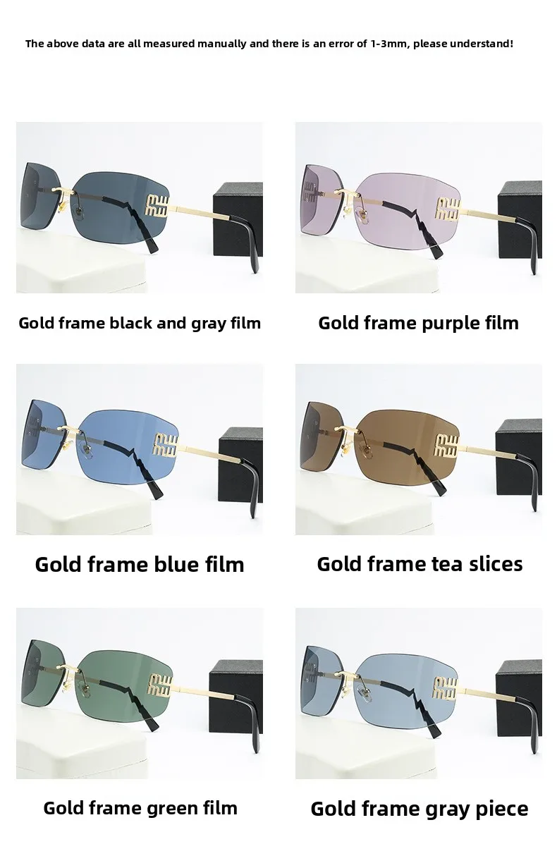 Curved One-Piece Sunglasses, Frameless Square Cut-Edge Design, UV400 Protection, Women's High-End Street Style